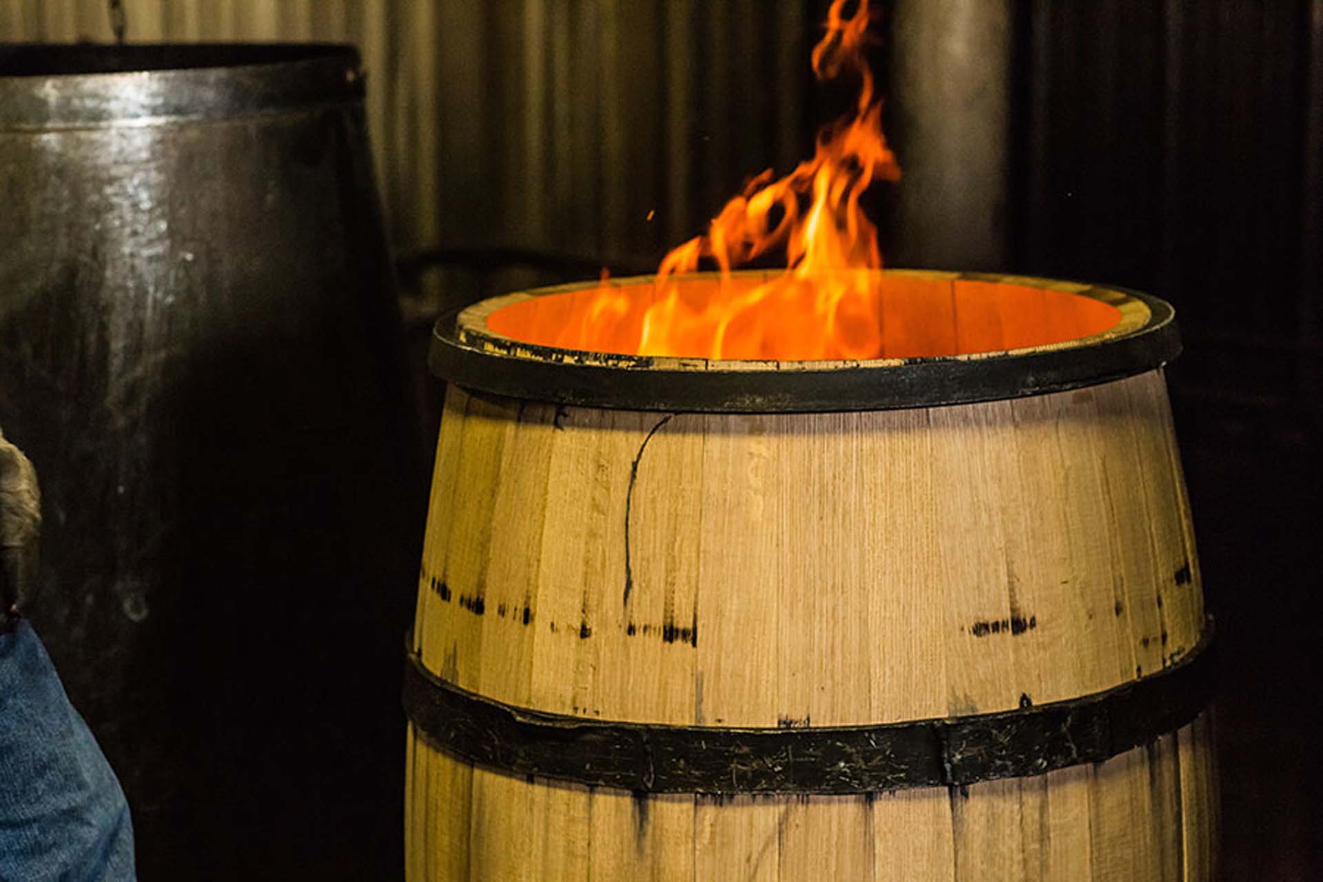 Уголь создает текстурированную поверхность, которая изменяет состав дуба, отфильтровывая нежелательные соединения в дистилляте и придавая сладкие карамельные и ванильные ноты. Взрывы огня обычно достигаются с помощью газа, а не дровяного пламени.