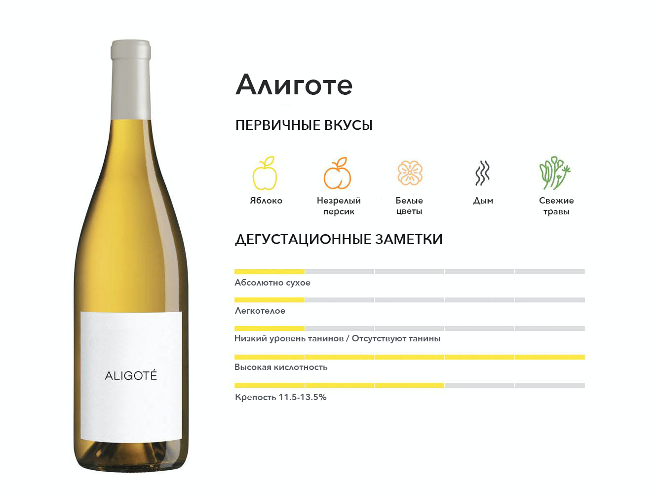 Алиготе — «другой» белый сорт винограда Бургундии, встречающийся реже, чем Шардоне; дает легкие цитрусовые вина. Это также традиционный базовый ингредиент коктейля Кир.