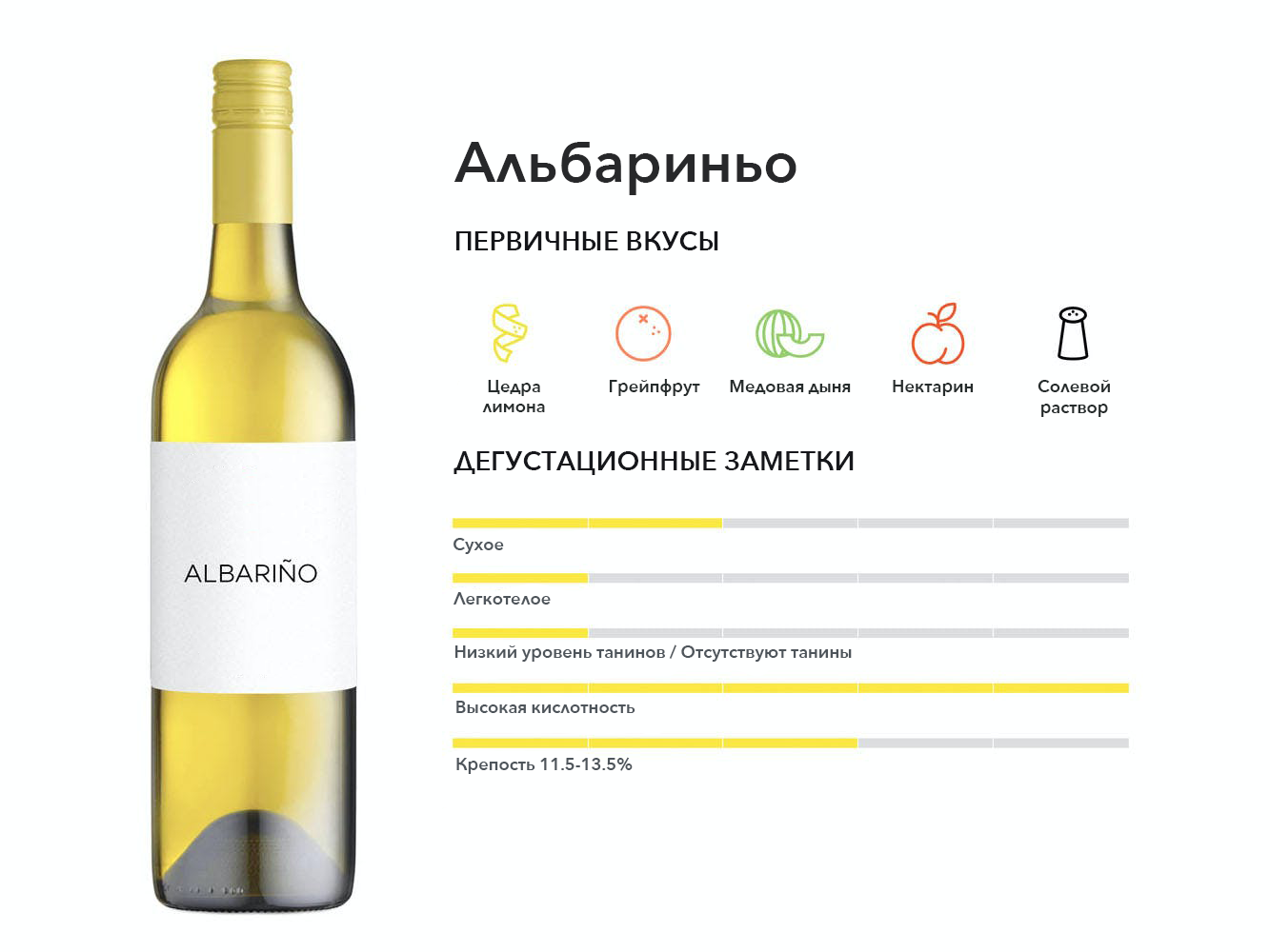 Вино Albariño — восхитительно освежающее белое прибрежное вино, произрастающее на Пиренейском полуострове. Его любят за богатый вкус косточковых фруктов, оттенок солености и резкую кислотность.