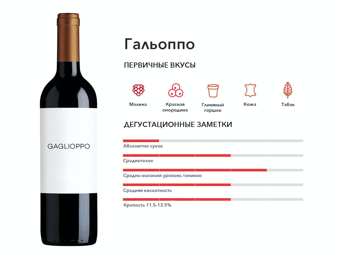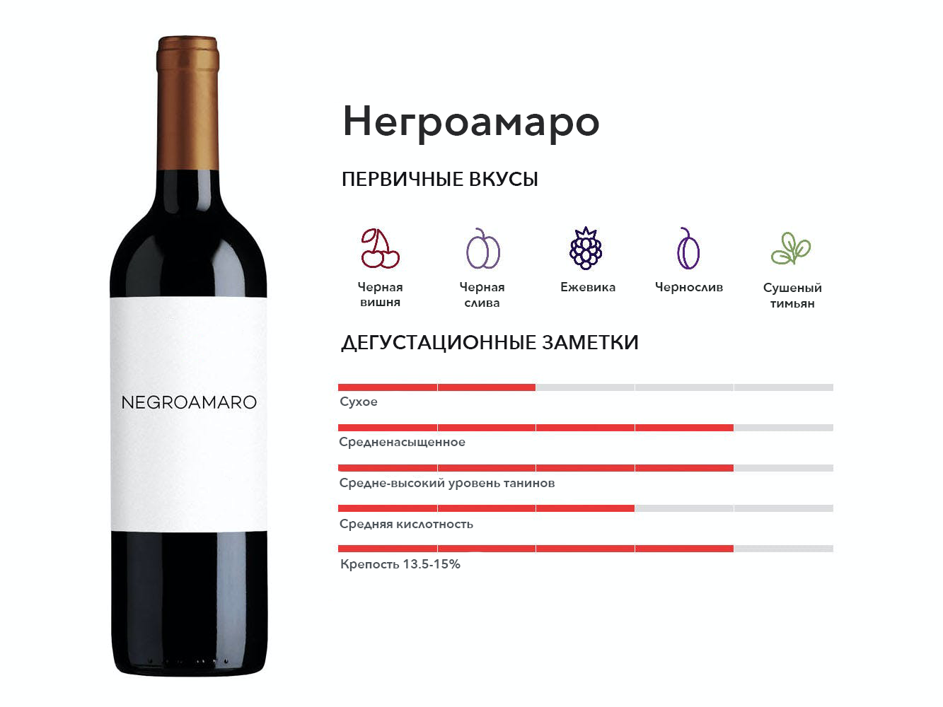 Красное вино, которое в изобилии растет в Апулии, но почти нигде больше; производство вин с богатым вкусом черных фруктов с отчетливым послевкусием сушеных трав.