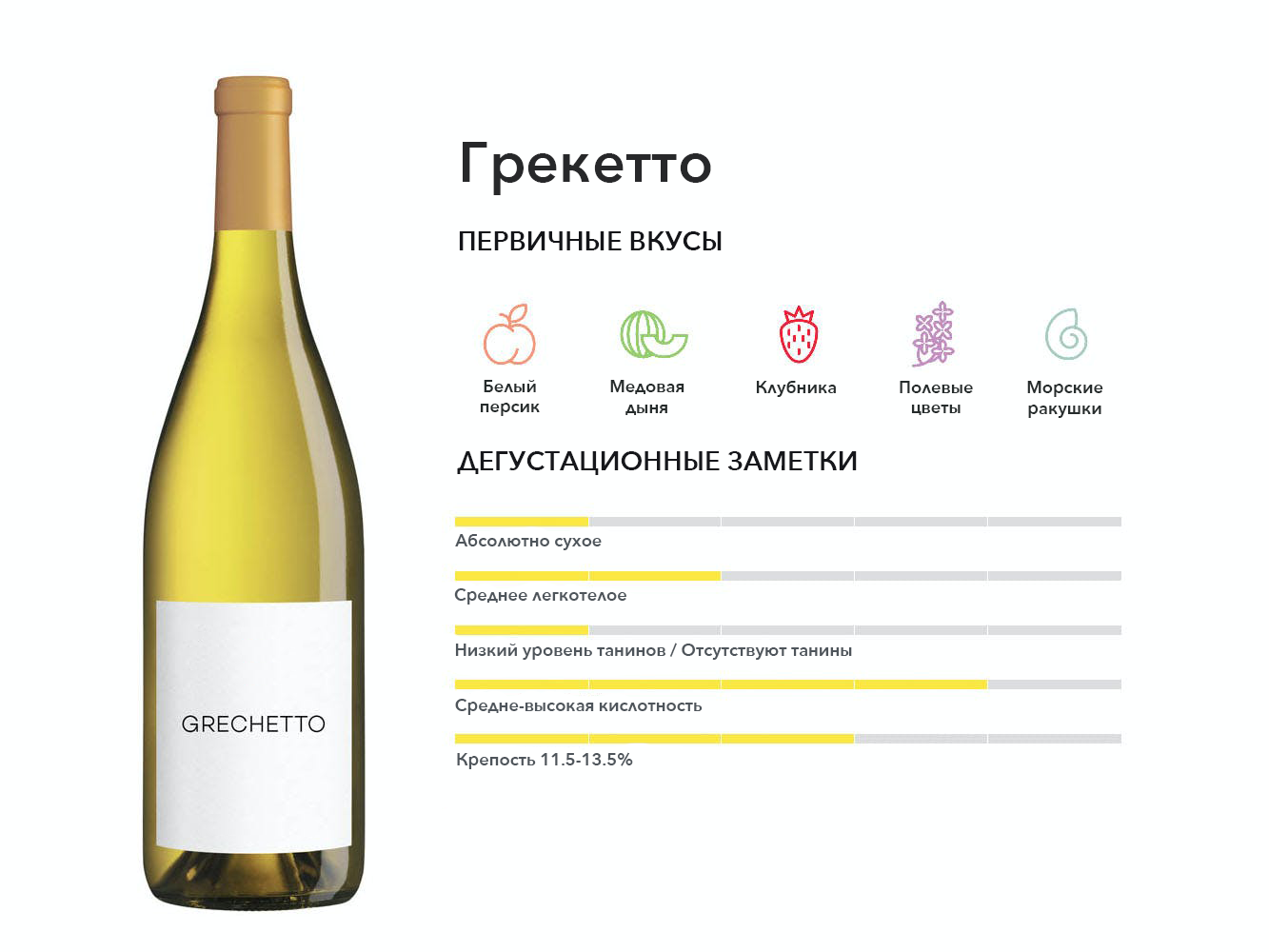 Основной виноград в известных итальянских винах Орвието из Умбрии и Лацио. Этот белый более насыщенный по телу, и если вы закроете глаза, он напомнит вам о розовом!