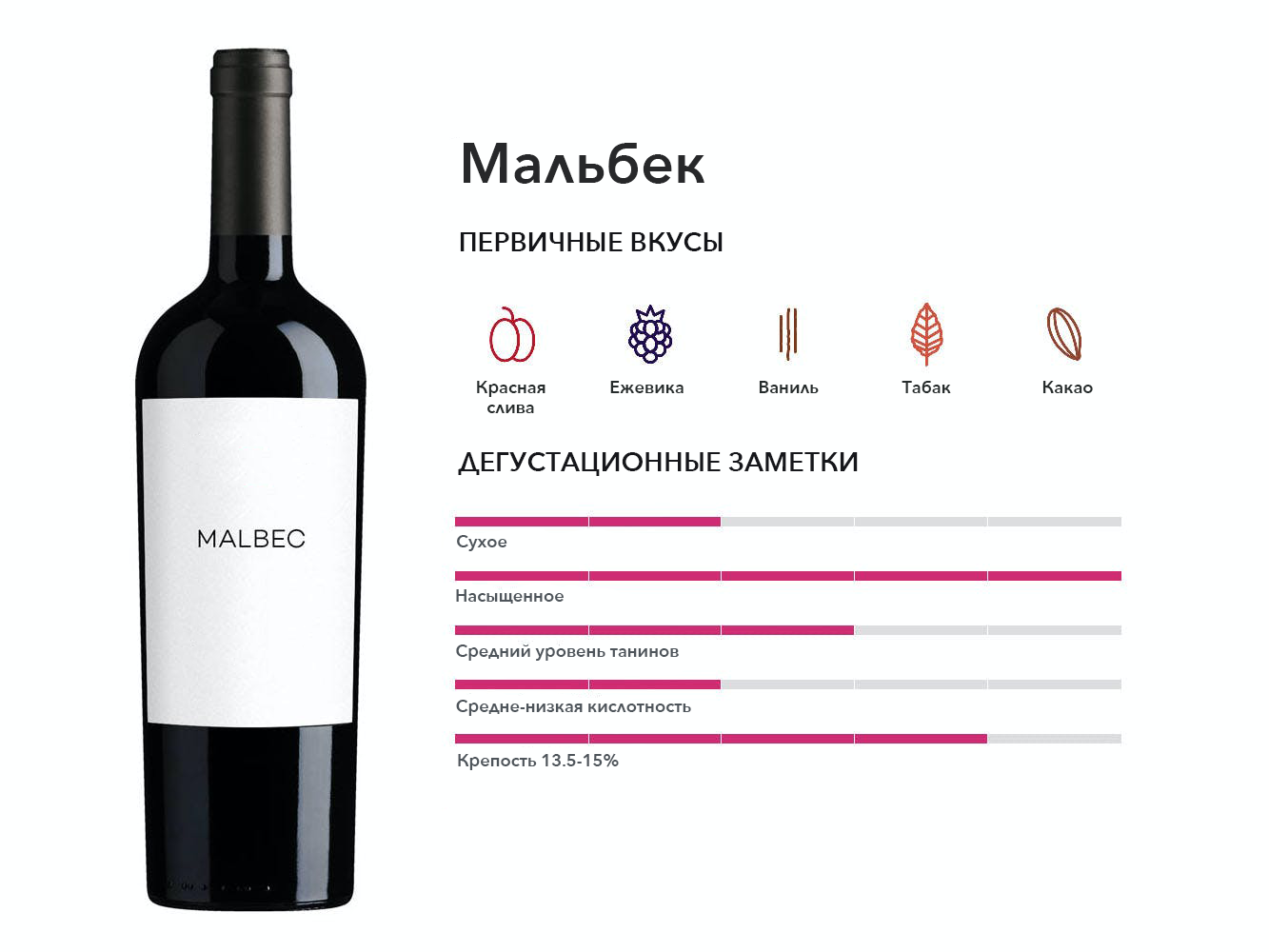 Самый важный аргентинский сорт пришел из Франции, где его обычно называют Côt. Вина любят за их насыщенный темный фруктовый вкус и гладкое шоколадное послевкусие.