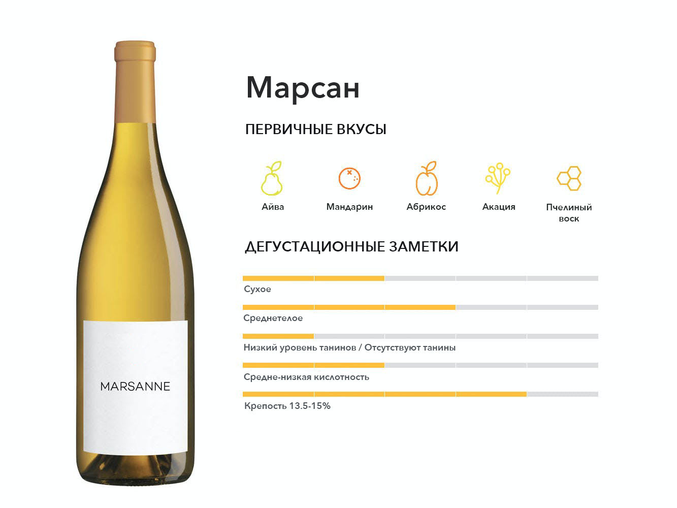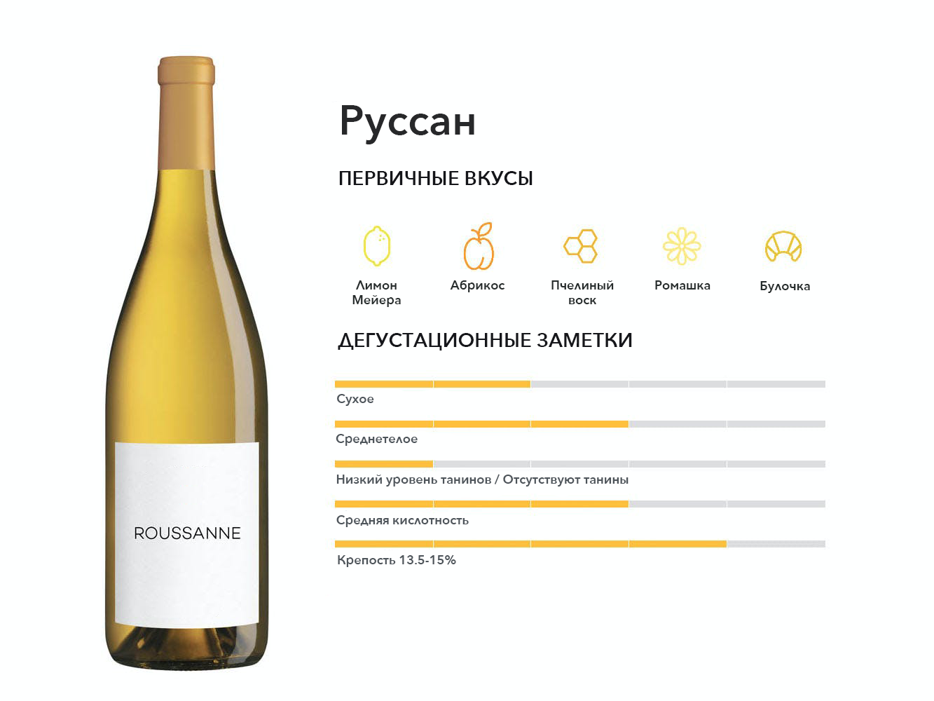 Основной сорт винограда, используемый в смесях белой Роны, в которые также входят сорта Руссан, Гренаш Блан и иногда Вионье. Отличная альтернатива Шардоне.