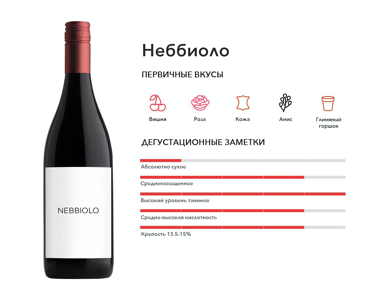 Один из самых важных сортов красных вин Италии, прославившийся регионом Бароло в Пьемонте, где вина отличаются тонким ароматом и сильными танинами.