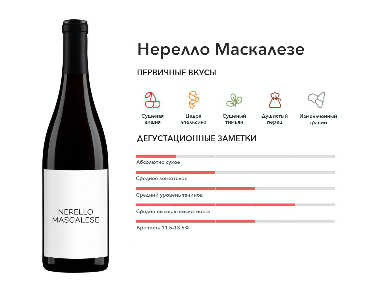 Восхитительная редкая находка из Калабрии, дочерний сорт винограда Санджовезе и родственник сицилийского сорта Нерелло Маскалезе. Вина часто доставляют пыльные фруктовые ароматы.