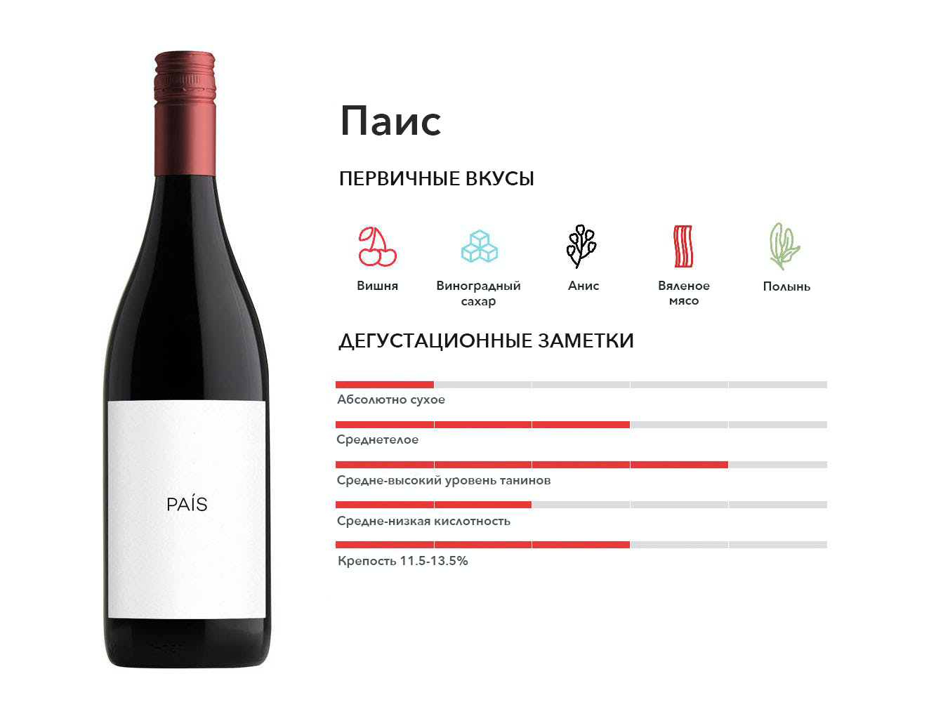 Чилийское название испанского винограда Листан Прието. До недавнего времени он использовался в основном для производства розового вина, когда заботящиеся о качестве натуральные виноделы выпускают терпкие красные вина с высоким содержанием танинов, изготовленные из старых лоз Паиса.