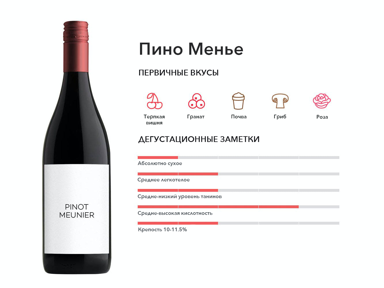 Этот фруктовый красный сорт винограда чаще всего используется в качестве основного компонента для самого популярного в мире игристого вина — шампанского.