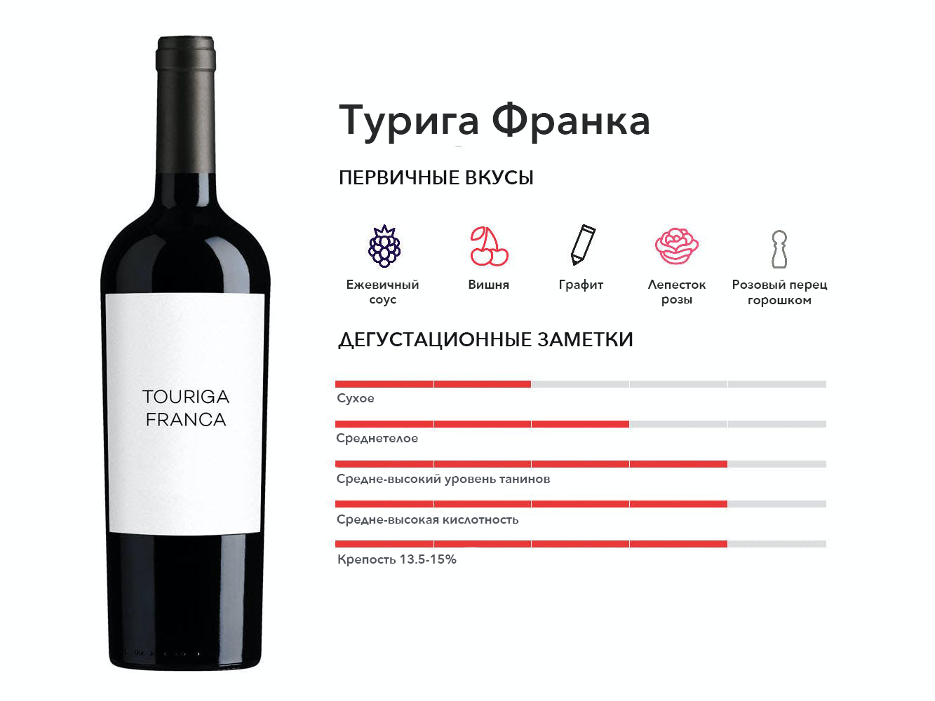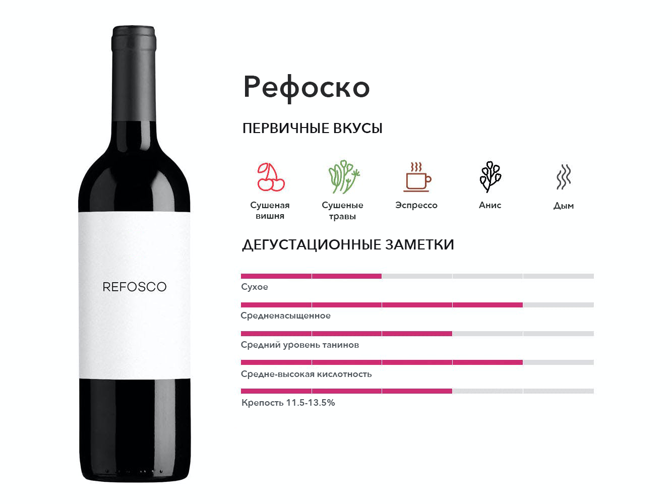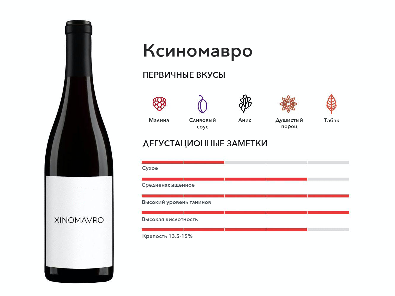 Фруктовый, но смелый красный цвет, который любят за вкус красных фруктов и дымные ноты экзотических специй. Родом из Хорватии и связан с лучшим хорватским сортом винограда Плавич Мали.