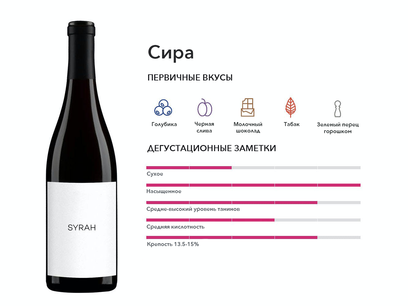 Насыщенное, мощное, а иногда и мясистое красное вино родом из долины Роны во Франции. Сира — самый выращиваемый сорт винограда в Австралии, где его называют Шираз.