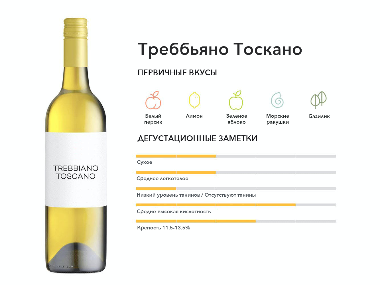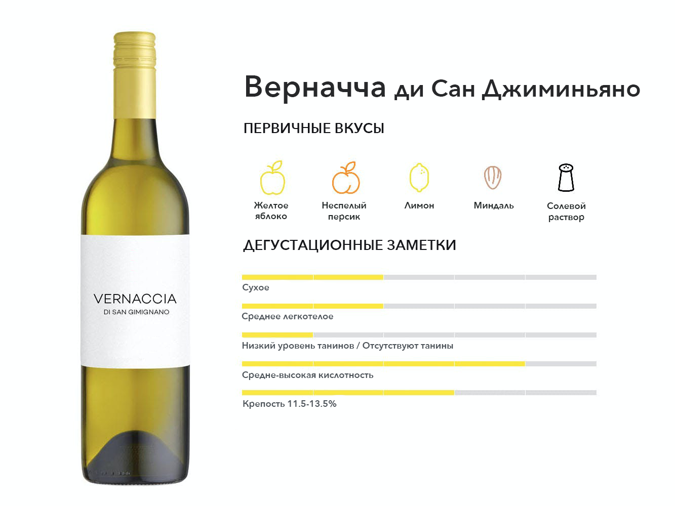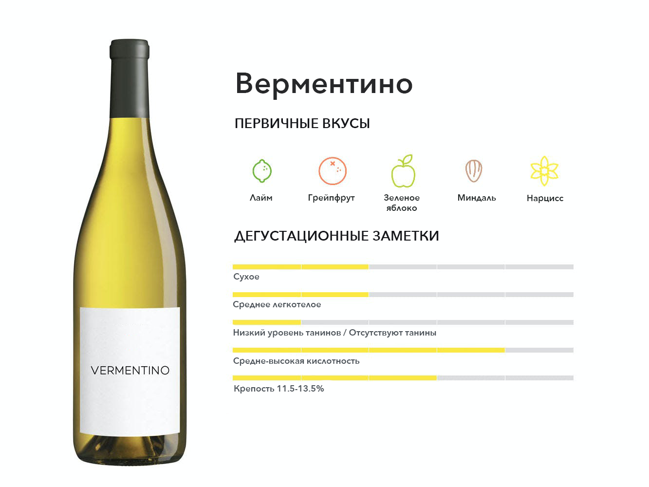 Родом из Тосканы, этот белый виноград также является сортом тосканского регионального вина с таким же названием. Вина яркие, цитрусовые и хрустящие, с легкой горчинкой в послевкусии.