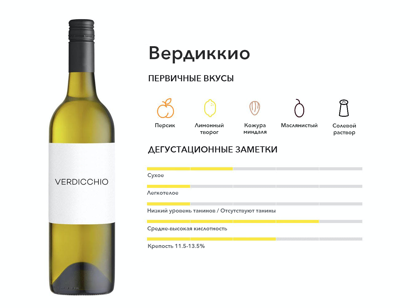Восхитительное белое вино, которое в основном встречается в Марке, Италия, где вина Вердиккио любят за их сладкий, персиковый аромат и несколько маслянистую текстуру.