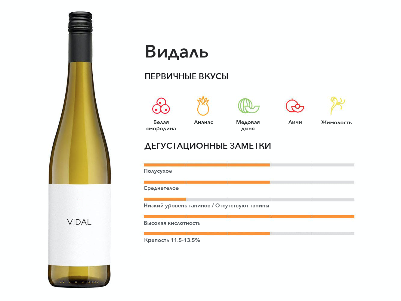 Видаль — французский гибрид винограда, который в настоящее время используется в Канаде. Идеально подходит для ледяного вина, так как лозы невероятно выносливы и подходят для суровых зим.