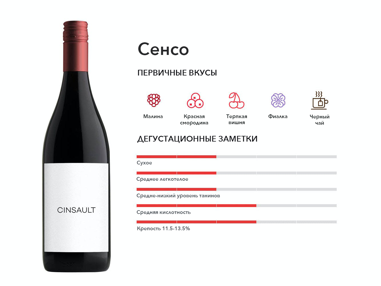 Один из второстепенных сортов винограда, встречающихся в купажах Роны и розовых винах Прованса; Cinsault предлагает свежие, резкие красные вина, которые являются столь же цветочными, сколь и фруктовыми.