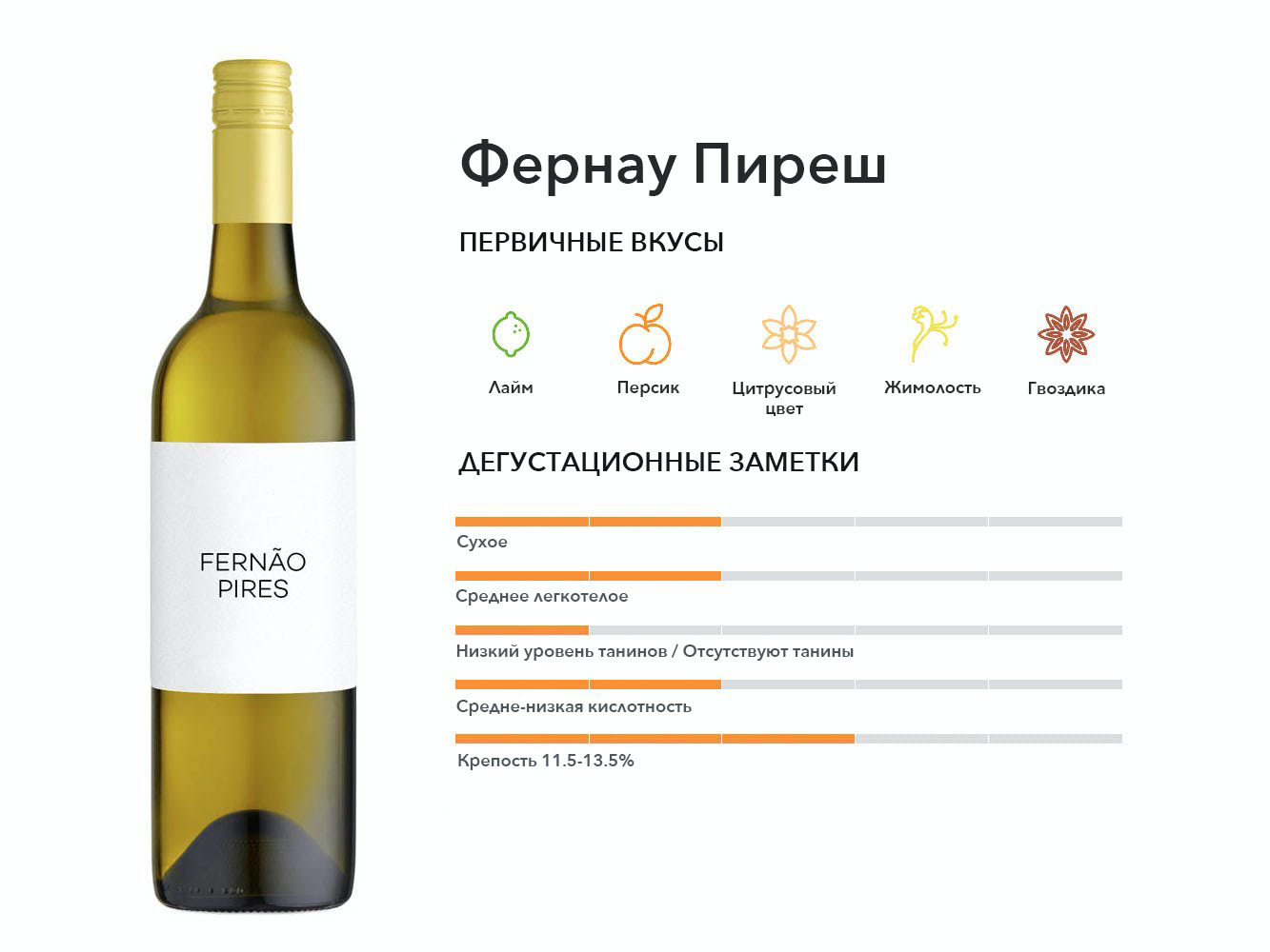 Фернау Пиреш — лучший белый сорт винограда в Португалии. Вина отличаются высокой интенсивностью цветочных ароматов и средним телом.
