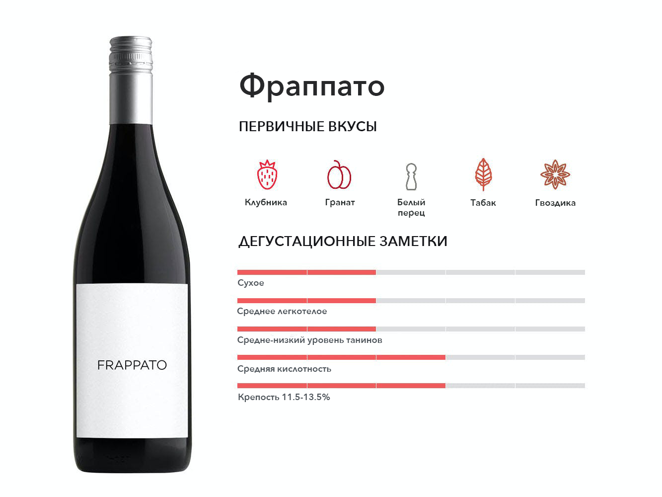 Редкая фруктовая находка из Сицилии, Фраппато взрывается ароматами сладких красных ягод и ладана. Иногда его смешивают с Nero d’Avola, чтобы добавить сложности.