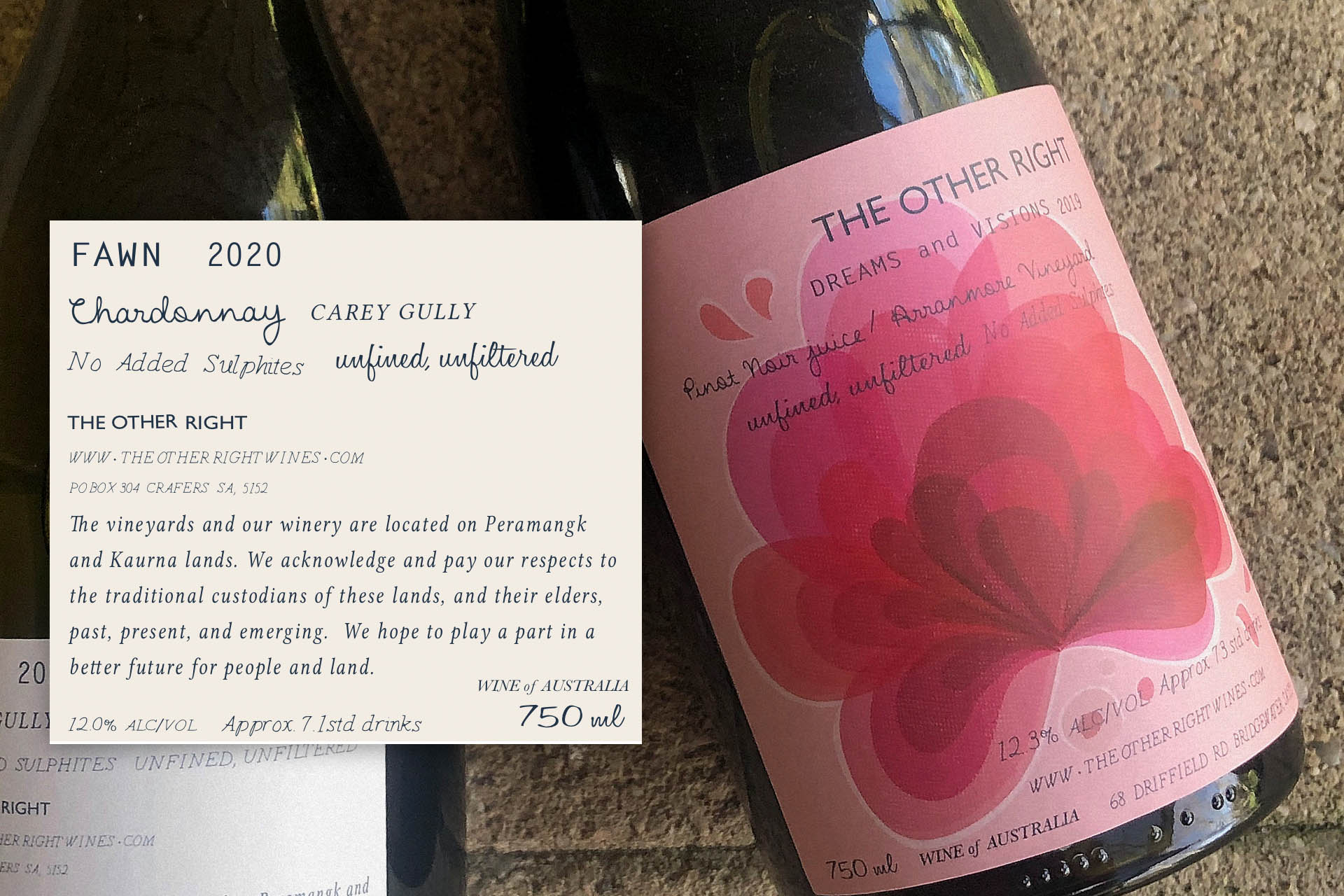 Существует также важная разница для коренных австралийцев «между «землей» и «страной». Последнее относится «не только к земле, но также к культуре и истории; а земля есть земля, почва», — говорит Шулкин. Поскольку Adelaide Hills, где базируется The Other Right, охватывает территорию, которая была домом для культур Каурна и Перамангк, названия обеих культур указаны на их этикетках.