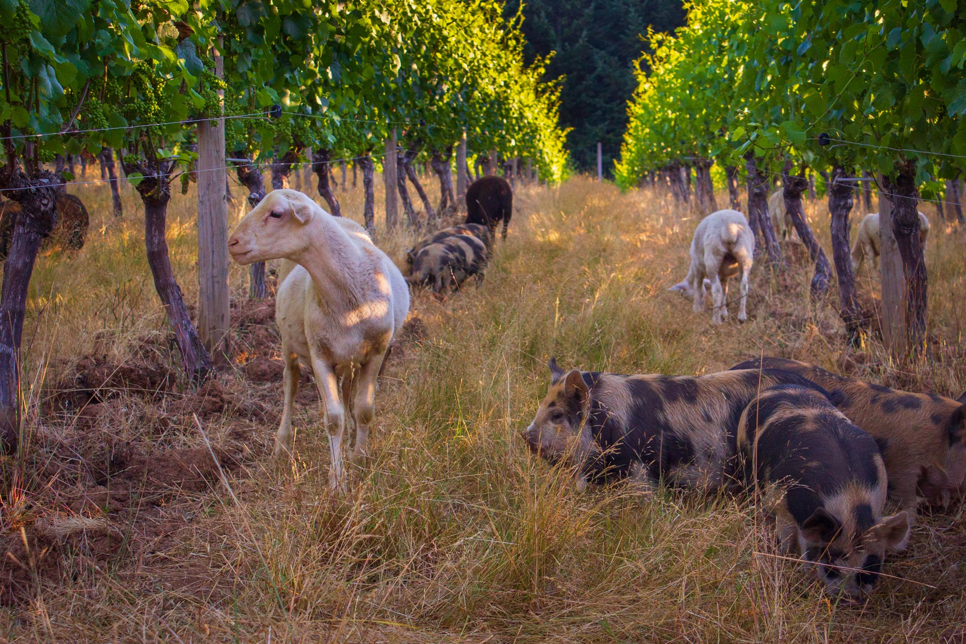 «Куры помогают уменьшить паразитарную нагрузку овец, свиньи также являются эффективными убийцами сорняков и вносят свой собственный уникальный биологический след и инокулят в микробиом виноградника», — говорит Хаген. «Индейки и гуси по сути являются убийцами вредителей и дезинфицирующим средством. Все они участвуют в создании функционирующей самоподдерживающейся экосистемы».