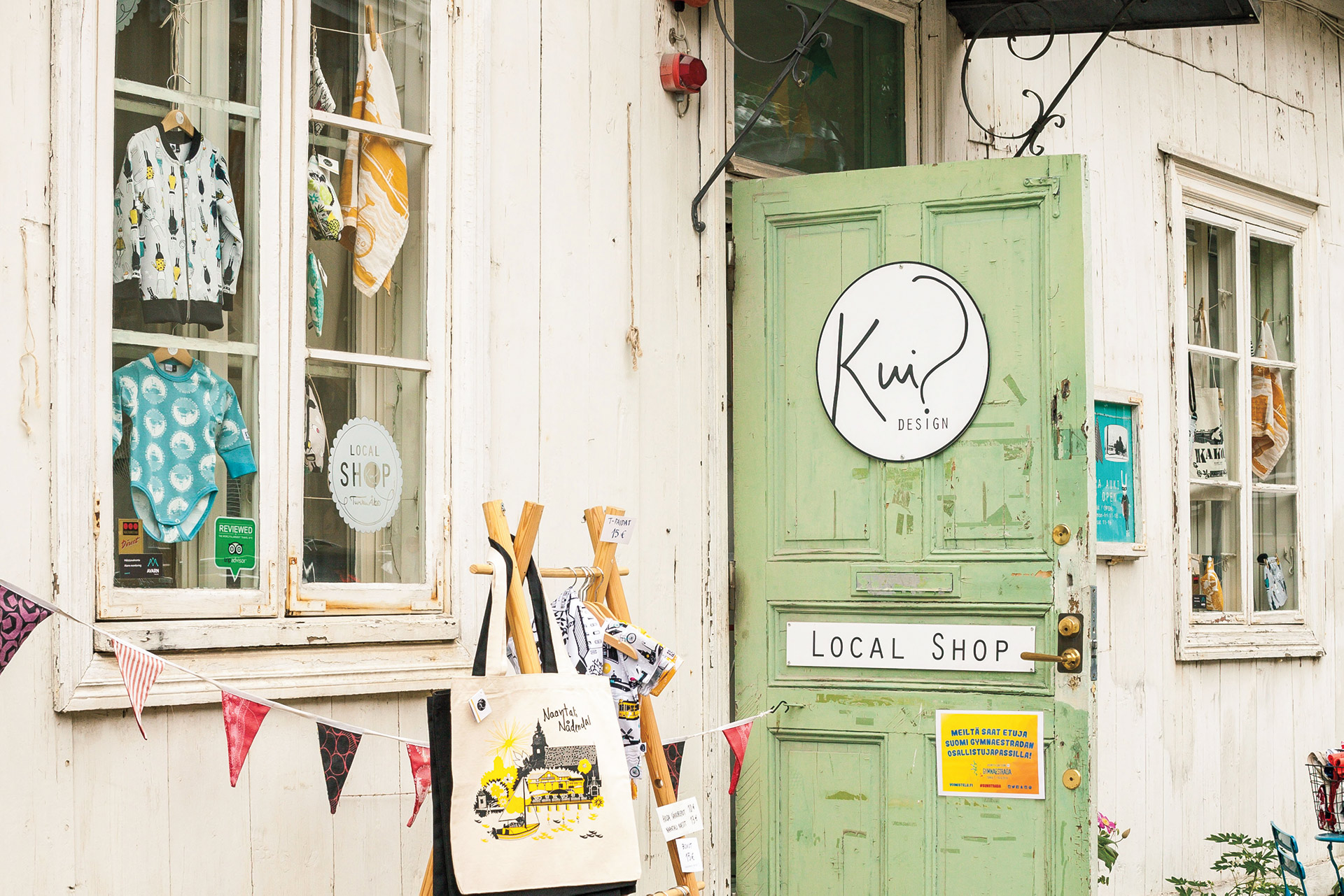 Начните с Puf Design Market, коллектива всемирно известных брендов и перспективных дизайнеров, который демонстрирует ротацию товаров для дома и одежды. Подберите деревянные галстуки-бабочки — неожиданный хит от дизайнера Hermanni Vuorisalo. В местном магазине Kui Design продается симпатичная одежда, сумки и текстиль с изображением художников на тему Турку.