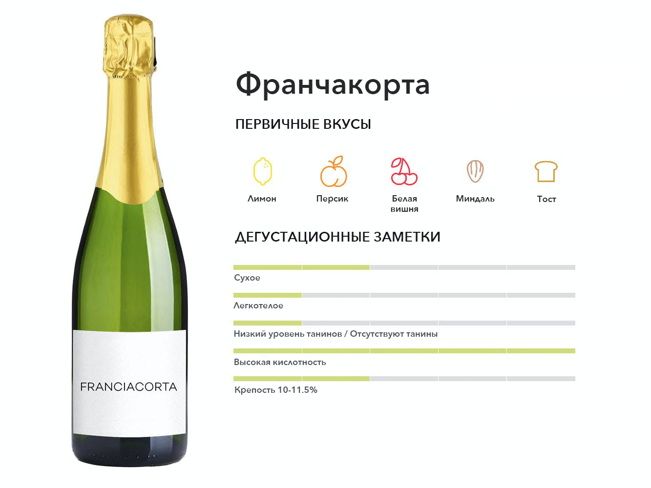 Региональное игристое вино из северной Италии. Изготовлено в нескольких стилях, с использованием того же метода и сорта винограда, что и шампанское, с добавлением Пино Блан.