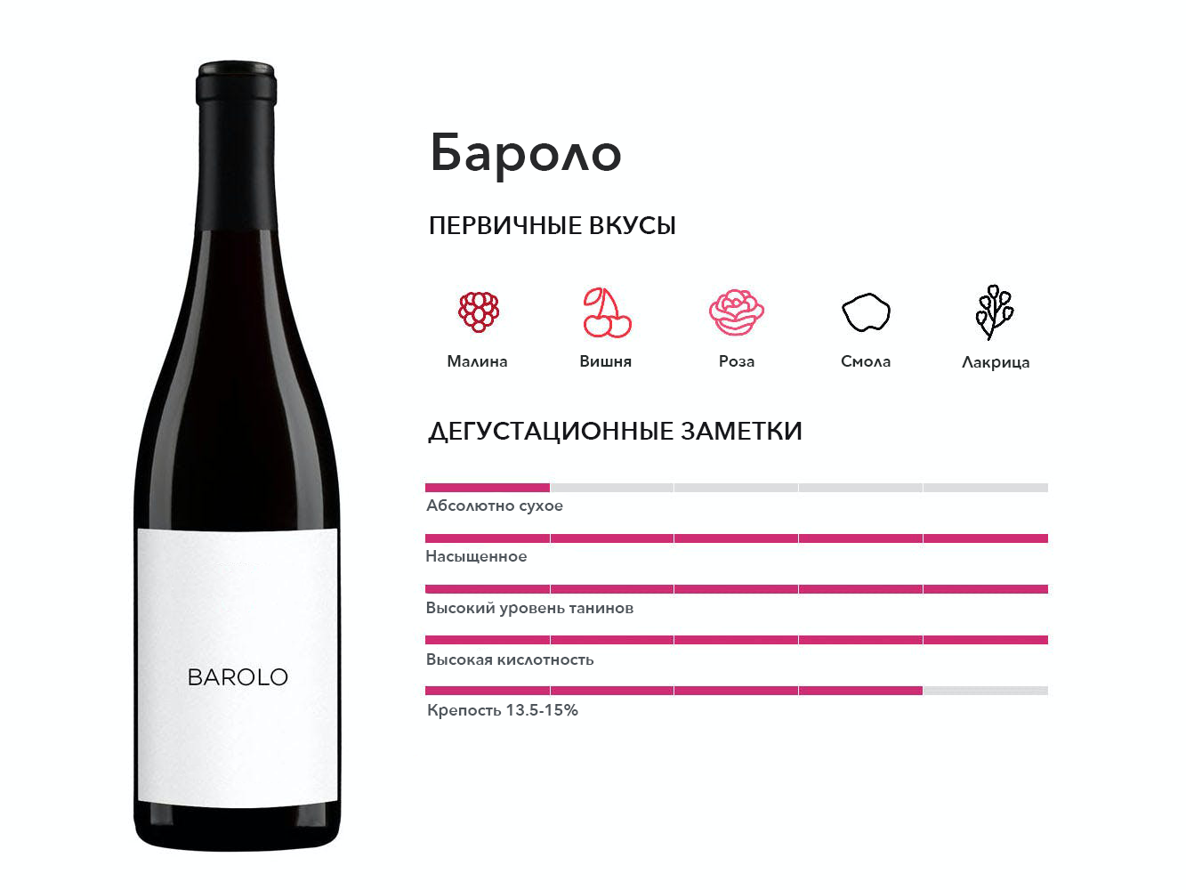 Самое известное красное вино Пьемонта производится из 100% винограда сорта Неббиоло. Его полупрозрачный кирпично-красный цвет, обманчиво легкое тело и цветочные ароматы контрастируют с плотной танинной структурой.