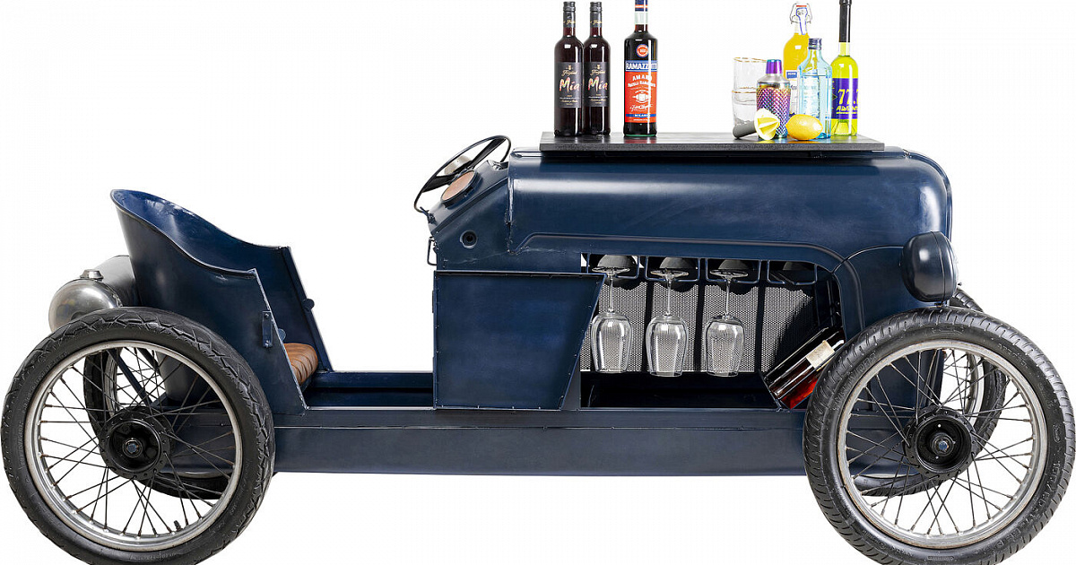 Racing Car 86507 – это оригинальный шкаф-консоль, выполненный в форме стильной ретро-машины синего цвета. Он станет не только функциональной деталью интерьера, но отличным дизайнерским дополнением комнаты. Корпус модели изготавливается из лакированной стали и необработанного массива манго. Максимальная нагрузка для такого шкафа достигает 120 килограммов. На капоте этого «авто» расположена небольшая, но аккуратная столешница. В боковой части шкафа есть крепления для бокалов с ножкой, а на «сидения» машины можно поставить цветы или другие элементы декора. Вместимость такого шкафа достигает 6 бутылок хорошего вина типа Бордо. Модель станет необычной изюминкой для гостиной или столовой.