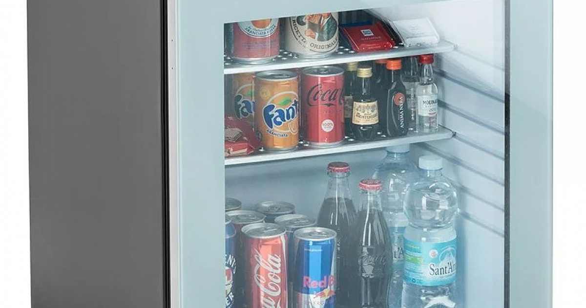 Прозрачная стеклянная дверь и светодиодное освещение привлекает внимание гостя и увеличивает потребление продуктов из минибара.