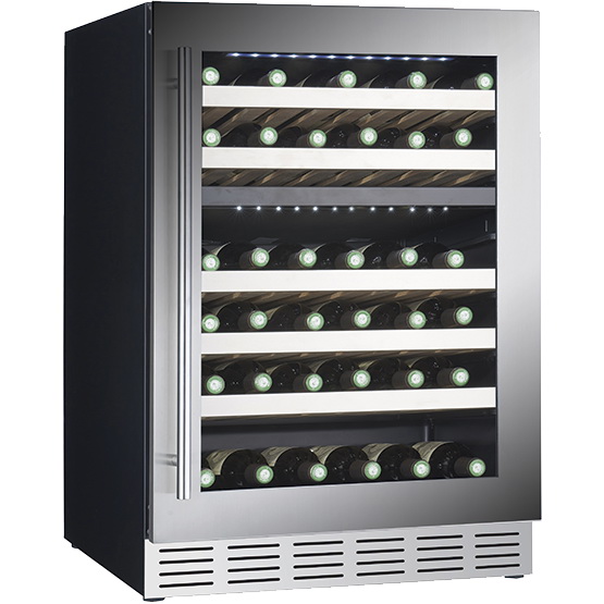 Винный шкаф CV060DT – это новая компрессорная модель в премиальной серии испанского бренда Cavanova. Высокое качество материалов и сдержанный классический дизайн придают модели респектабельный внешний вид. Еще одним преимуществом CV060DT является возможность установки как отдельно стоящего шкафа или встраивания под столешницу/в нишу. Винный шкаф предполагает возможность хранения 46 винных бутылок стандартного размера. Благодаря использованию компрессорной системы охлаждения с помощью хладагента R600a, производитель добился снижения потребления электроэнергии и существенного расширения диапазона поддерживаемых температур. Шкаф имеет две зоны охлаждения, каждая из которых сохраняет температурный режим в пределах +5°С - +20°С. Панель управления с экраном расположена в верхней части корпуса и скрывается за дверцей. 5 выдвижных деревянных полок и мягкая светодиодная подсветка облегчают доступ к содержимому шкафа.
