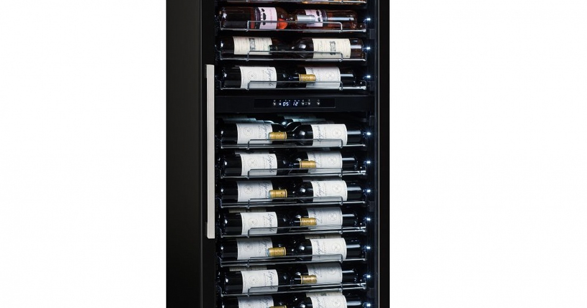 Большой винный шкаф PRO160DZ – это сочетание высокого европейского стиля и неповторимого французского качества. Он выпускается популярной товарной маркой La Sommeliere (Ла Сомельер). Гарантия качества от компании производителя составляет 2 года. Общая вместительность холодильника превышает 150 бутылок хорошего вина. Их можно разместить на 15 прочных полочках из качественного металла. Дверца шкафа выполнена из прочного стекла высокого качества. Ее нельзя перенавешивать на другую сторону. Внутри конструкции установлена электронная система управления и компрессорная система охлаждения. Корпус шкафа окрашен в темные оттенки черного цвета. Главным отличием модели является красивая светодиодная подсветка.