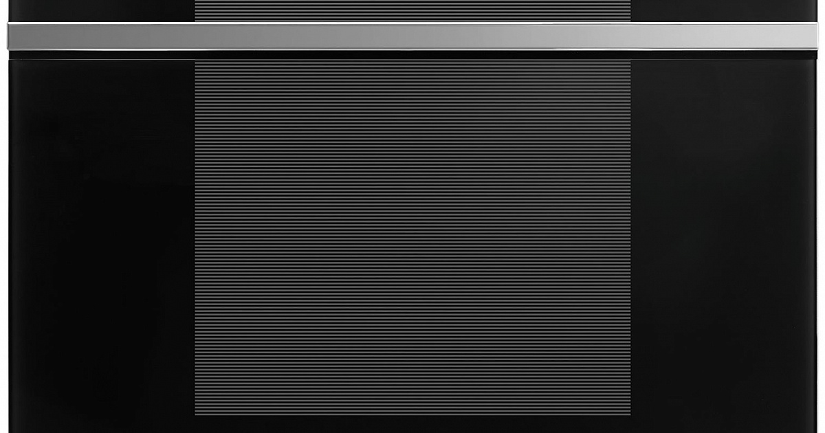 Черная стеклянная дверь без рамки с двухтактным открыванием (открытие дверки нажатием на нее).